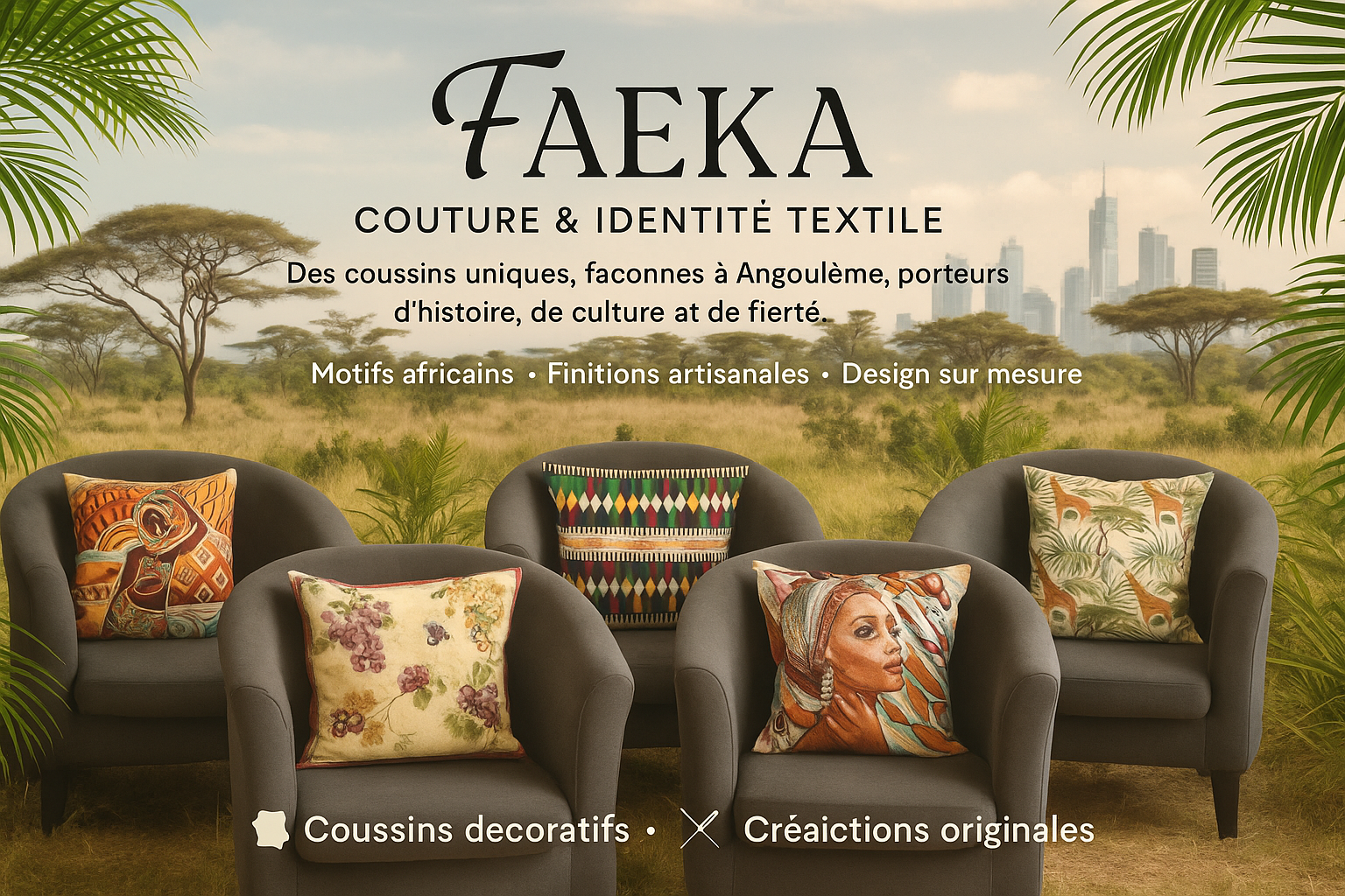 Avec ses coussins artisanaux et ses sacs textiles de maison, FAEKA introduit dans nos intérieurs la chaleur de l'Afrique, la noblesse du fait main, et l'élégance d'un savoir-faire féminin transmis et réinventé.